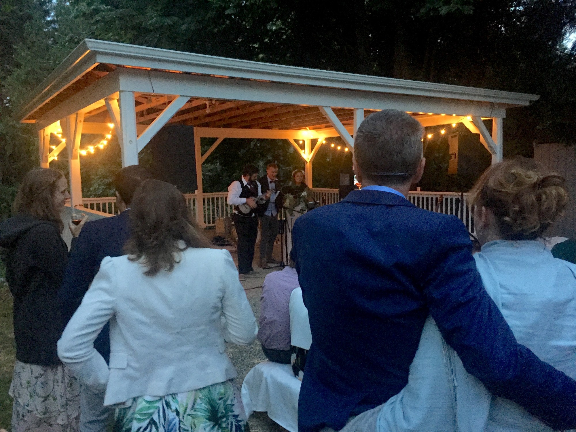 Last week we had the incredible honour to perform for newly-weds Keven and Celine on beautiful Saltspring Island. From the boisterous gang performance on Don’t Stop Believing, to the touching version of “Stand By Me” performed by the bridal party (with lyrics they wrote themselves!), to the young girls performing Dancing Queen, there were too many highlights to name. Â But the one that really stood out is this moment right here: Keven and Celine taking the stage to perform a duet of “I Can’t Help Falling In Love With You”.
